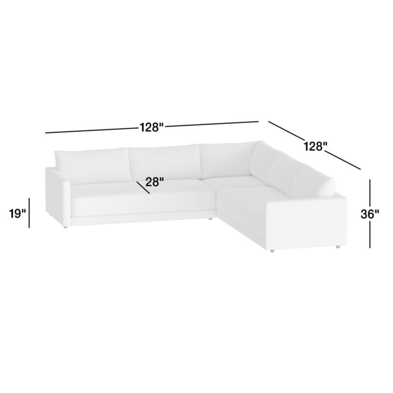 Gather Deep 3-Piece L-Shaped Bench Sectional Sofa26height128width128depthMeasurements are in inches.66.04height325.12width325.12depthMeasurements are in centimeters.