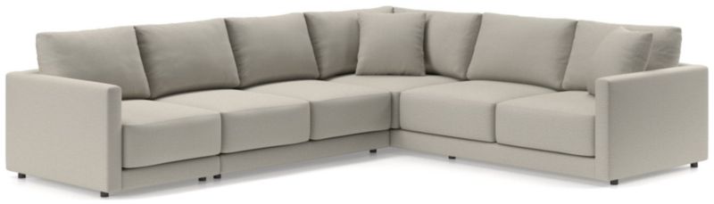Striking the perfect balance between maximum comfort and modern style, our Gather sectional sofa is clean-lined and current. Deep-seated cushions are boxy and extra-plush made with inner-coil construction for maximum comfort and durability. Fiber-filled back cushions settle you in for the ultimate lounge.