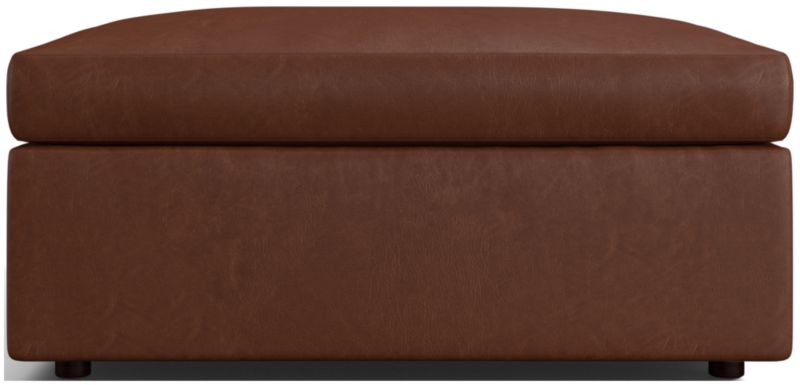 Designed to coordinate with our clean-lined and current Gather collection, the ottoman strikes the perfect balance between comfort and modern style. Resting on a slim base, the over-sized cushioned top is upholstered in exquisite leather for a luxurious look and buttery soft hand. Serving as a footrest, casual coffee table or extra perch, the ottoman conceals a spacious interior for storing throws, games and more.