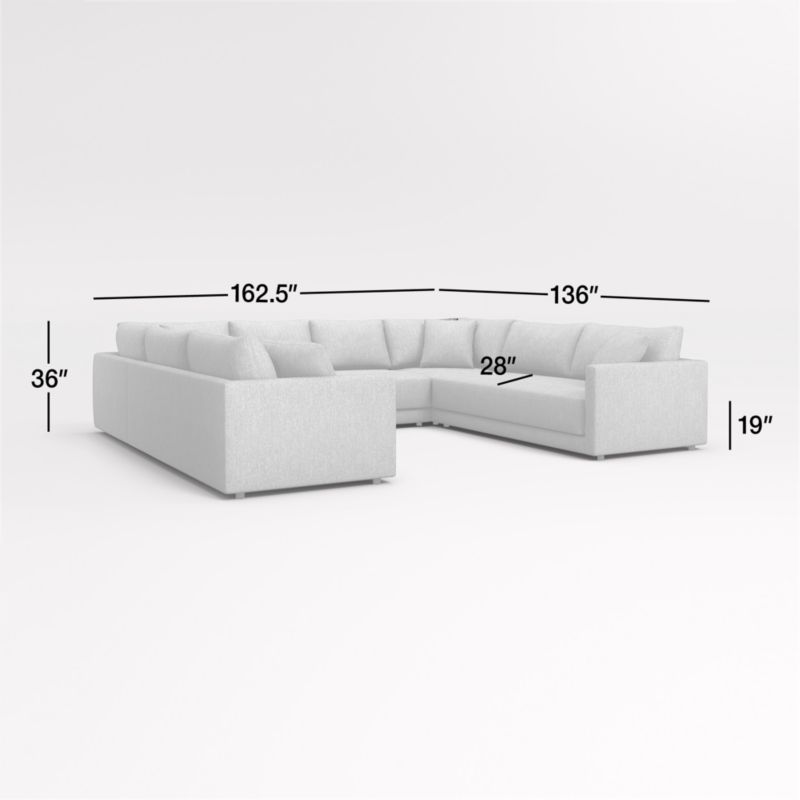 Gather Deep 5-Piece U-Shaped Bench Sectional Sofa26"Hheight146.5"Wwidth128"DdepthMeasurements are in inches.66.04Hheight372.11Wwidth325.12DdepthcmMeasurements are in centimeters.