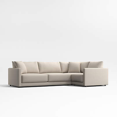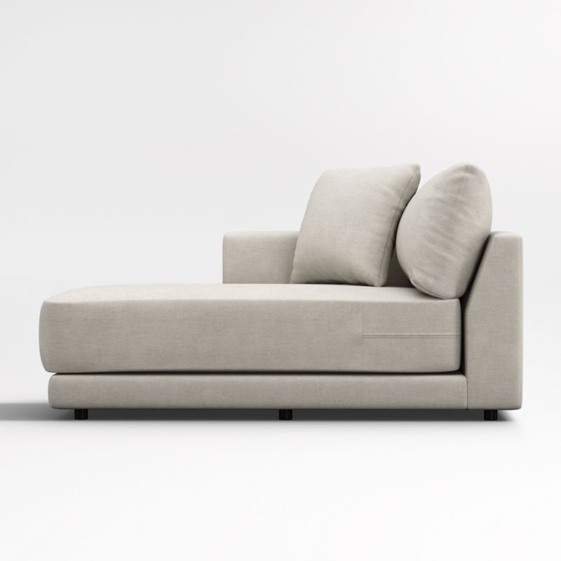 Everyone's invited to Gather. Clean-lined and current, our Gather sectional seating strikes the perfect balance between comfort and modern style. The left-arm chaise breaks new ground with a thin deck that puts all the focus on its boxy, extra-plush seat cushions. Trim top-stitching and a seamless armrest keep the look neat, not fussy. An exclusive Crate and Barrel design, the Gather left arm chaise is made with engineered wood certified by the Forest Stewardship Council (FSC ®), the environmental gold standard for responsibly managed forests.