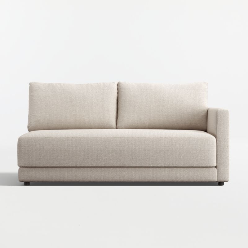 Striking the perfect balance between maximum comfort and modern style, our Gather sectional collection is clean-lined and current. Boxy, extra-plush seat cushions sit deep, made with inner-coil construction for maximum comfort and durability. Fiber-filled back cushions settle you in for the ultimate lounge. Combine sectional pieces to create custom seating to suit your space.