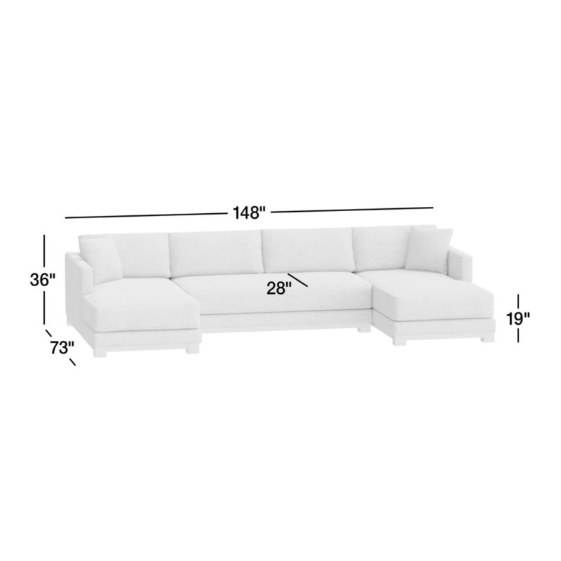 Gather Deep Wood Base 3-Piece U-Shaped Bench Sectional Sofa with Double Chaise Lounge26height148width73depthMeasurements are in inches.66.04height375.92width185.42depthMeasurements are in centimeters.