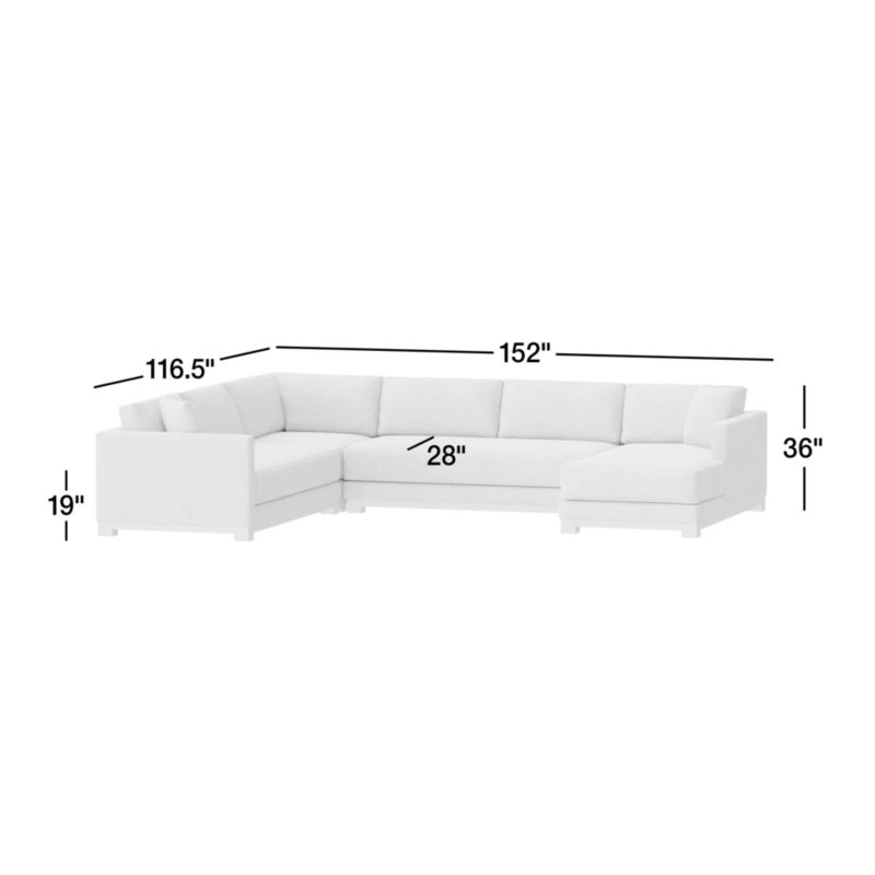 Gather Deep Wood Base 4-Piece L-Shaped Bench Sectional Sofa with Chaise Lounge26height162width116.5depthMeasurements are in inches.66.04height411.48width295.91depthMeasurements are in centimeters.