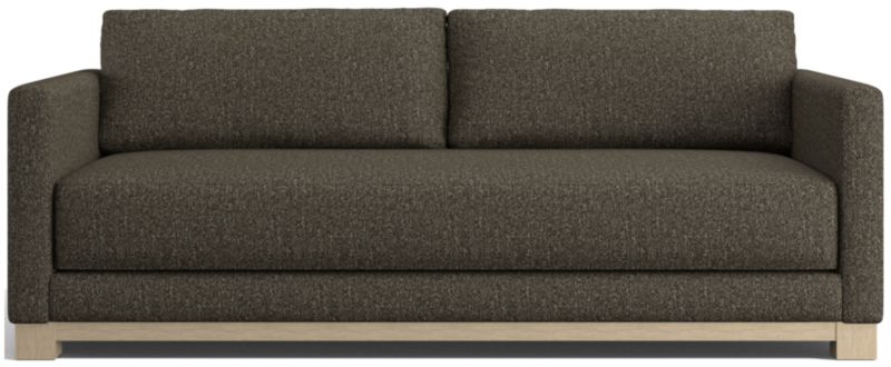 Striking the perfect balance between maximum comfort and modern style, our Gather sofa is clean-lined and current. Anchored by a wood base, the deep-seated sofa features a boxy, extra-plush seat made with inner-coil construction for maximum comfort and durability. Fiber-filled back cushions settle you in for the ultimate lounge.