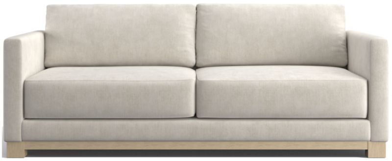 Striking the perfect balance between maximum comfort and modern style, our Gather sofa is clean-lined and current. Anchored by a wood base, the deep-seated sofa features a boxy, extra-plush seat made with inner-coil construction for maximum comfort and durability. Fiber-filled back cushions settle you in for the ultimate lounge.