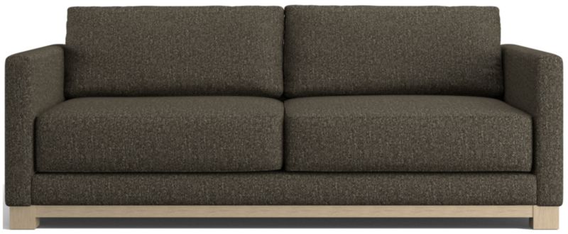Striking the perfect balance between maximum comfort and modern style, our Gather sofa is clean-lined and current. Anchored by a wood base, the deep-seated sofa features a boxy, extra-plush seat made with inner-coil construction for maximum comfort and durability. Fiber-filled back cushions settle you in for the ultimate lounge.
