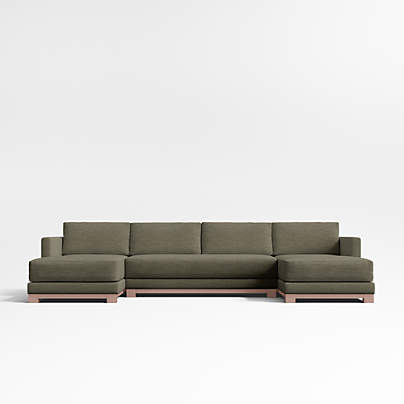 • Gather Wood Base 3-Piece U-Shaped Sectional Sofa with Double Chaise Lounge