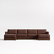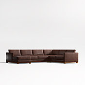 Striking the perfect balance between maximum comfort and modern style, our Gather sectional sofa is clean-lined and current. Exquisite leather upholstery gives the sectional a luxurious look and buttery soft hand. Anchored by a wood base, boxy, extra-plush seat cushions made with inner-coil construction offer maximum comfort and durability. Fiber-filled back cushions settle you in for the ultimate lounge.