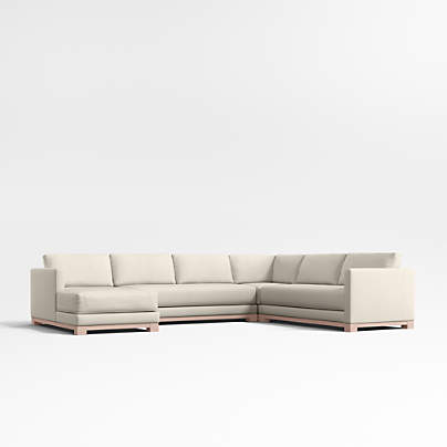 Striking the perfect balance between maximum comfort and modern style, our Gather sofa is clean-lined and current. Anchored by a wood base, the sofa features a boxy, extra-plush seat made with inner-coil construction for maximum comfort and durability. Fiber-filled back cushions settle you in for the ultimate lounge.