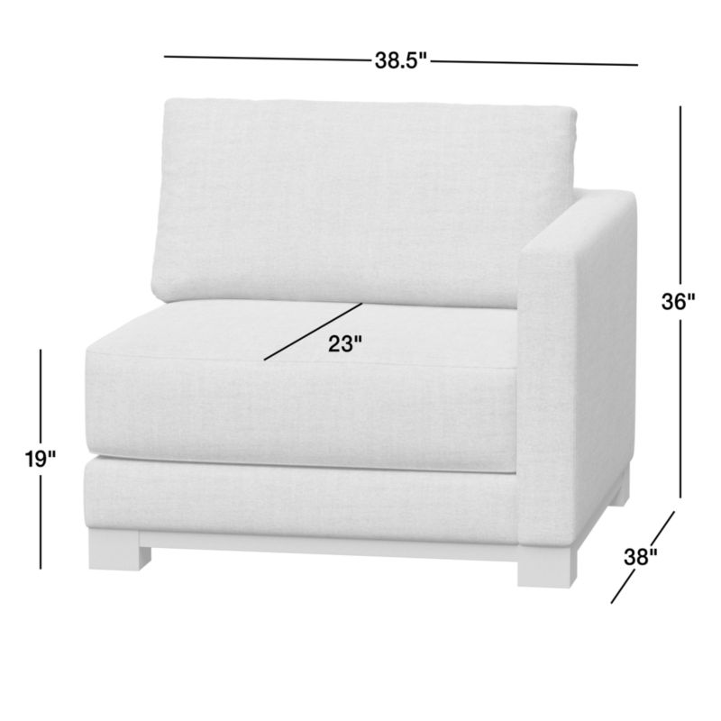 Gather Wood Base Right-Arm Chair Sectional Piece26"Hheight38.5"Wwidth38"DdepthMeasurements are in inches.66.04Hheight97.79Wwidth96.52DdepthcmMeasurements are in centimeters.