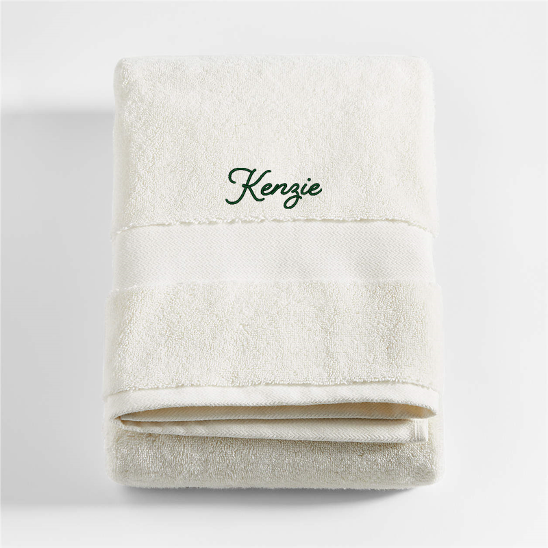 In stock and ready to ship Loading...Crate & BarrelSKU 586851Personalized Organic Turkish Cotton Ivory Bath TowelCAD 75.95includes CAD 16 personalization feeFree Shipping Eligible0 of 1 purchasedAdd to Cart