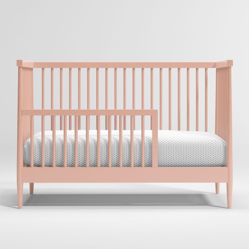 This safe, sturdy toddler rail features an on-trend pink finish that coordinates perfectly with our Hampshire Blush Crib. The rail allows the crib to convert into a first toddler bed and grow with your little one. Easy to attach and remove, this design is a Crate and Kids exclusive.