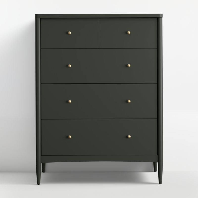 Bring clean, timeless design and ample storage space to your kid's bedroom or nursery with our Hampshire 5-drawer tall dresser. Its deep olive green finish blends effortlessly with any decor and never goes out of style. Antique brass metal knobs add a charming touch, and solid poplar construction makes it as durable as it is beautiful. Complete your room with matching pieces from our Hampshire furniture collection.