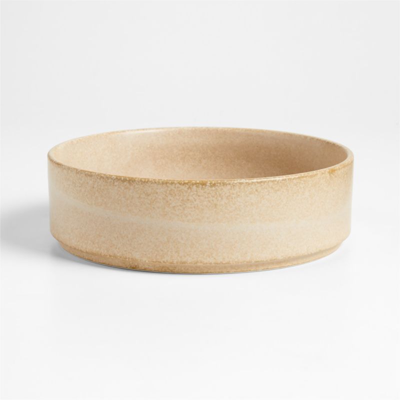 We looked to contemporary Japanese ceramics in crafting this stunning dinnerware collection. Made in central Japan, the low bowl is glazed by skilled artisans in a neutral hue, lending wabi-sabi sensibility to the clean modern shape. The straight-sided design contributes to the streamlined look while enabling the bowl to stack for space-saving storage and inspired display.