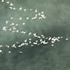 Our giclee print of the original photograph captures a flock of birds taking flight. Appearing as flecks of white against a dark sky of deep, modulated green tones, the flight formation takes on an abstract quality that gives this work its contemporary edge. Each print is presented in a wood floater frame with a natural finish.