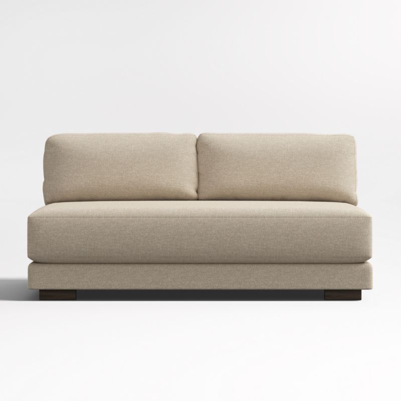 Inspired by modern European furniture design, our Horizon sectional sits low and relaxed while looking quintessentially contemporary. The armless sofa has a thick bench seat that sits deep with medium-soft cushioning. Pillow back cushions take a relaxed angle while providing comfortable support. Combine the armless sofa with other Horizon pieces to form a conversation-sparking sectional. Horizon is available in stock and custom fabric options.