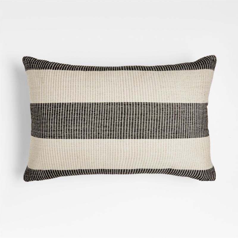 Ink Black 24"x16" Soft Textured Stripe Indoor/Outdoor Throw Pillow