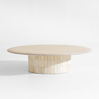 Inspired by coastal dwellings made from stone and mineral-washed plaster, our Ipanema coffee table refreshes outdoor living spaces with global vibes and a mix of natural textures. Intentionally crafted with subtle variations, resin tile draws attention to the low pedestal base. The round top is made of a sturdy mix of fiber and cement that's hand-finished to resemble stone. Pair the coffee table with Ipanema seating for an artisan-style outdoor retreat.