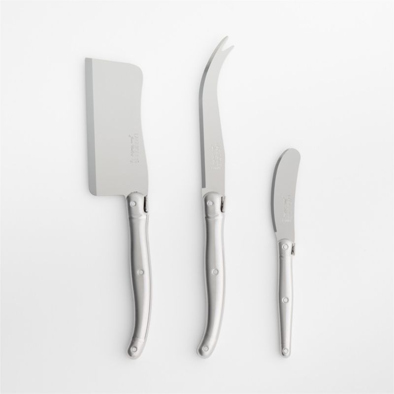 From the makers of France's famous steak knives comes this cheese knife set featuring the same quality construction and signature slim, ergonomic handles. Boxed set includes a spreader, pronged cheese knife and cleaver with stainless-steel blades and brushed metallic-finish handles.