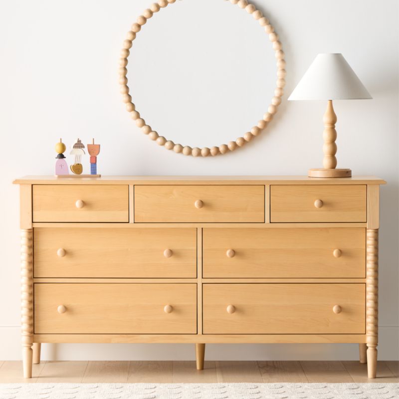 A bestseller for a reason, our Jenny Lind collection offers showstopping storage solutions that keep everything organized. With its extended length, this extra wide dresser provides plenty of drawer space, while a natural maple finish keeps it elegant and earthy. The iconic collection, with its intricate wood turnings, has been made in the same location with the same classic design for more than 20 years—but its modern sensibility means it hasn't aged a day. Each spindle is made from a single piece of wood, then hand-sanded to capture every gorgeous detail. We love the slight overhang of the top drawers, giving our piece a unique profile. Fun fact: This forever classic is named for the 19th century opera singer Jenny Lind, who was the pop icon and influencer of her day.