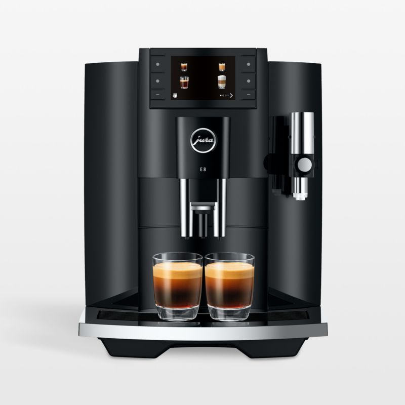 Now better than ever, the Jura E8 espresso machine is incredibly easy to use, combining state-of-the-art technology with a sleek modern design for delicious coffee. Prepare 17 coffee classics and specialty drinks at the push of a button for the same high quality you'd expect from a fine coffee bar. Thanks to the integrated coffee grinder, beans are always freshly ground, while an advanced brewing system ensures optimal extraction. It's simple to choose your favorite coffee drink with an enlarged and easy-to-use push-button display. To tailor Americanos to your liking there's a dedicated waterspout as part of the optimized fluid system. For those who like a more intense brew, the Extra Shot peps up cappuccinos or lattes. There's even one-touch cleaning of the milk system to keep your E8 primed and ready for your next coffee drink. Available in sleek black, this top-notch espresso machine delivers professional results for the home barista.