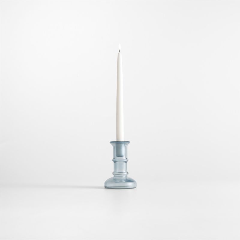 Our Kati collection reimagines traditional candlesticks in a sustainable material with artisanal quality. Master glassworkers blow recycled blue-grey glass by hand to create the iconic silhouette of a turned candle holder. Subtle texturing complements the oceanic tint for an ethereal look we love. Mix and match our Kati taper holders in varying heights and hues to create an airy, serene candlelight display.