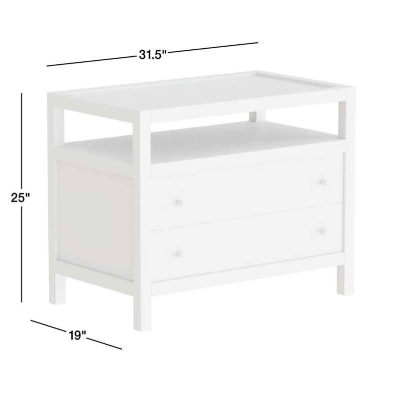 Refined and bold, Keane takes bedroom furniture beyond simple storage. Scaled to create a stately presence in the master bedroom, each piece is crafted of beautiful mahogany and meranti with a grey-wash driftwood finish. The wood nightstand features inset panels to draw the eye to its clean, architectural lines. Mirroring the linear look of the Keane bed, the generously sized two-drawer nightstand floats a top shelf and accommodates modern living with a powerstrip inside the top drawer. Our best-selling Keane collection is a Crate & Barrel exclusive.