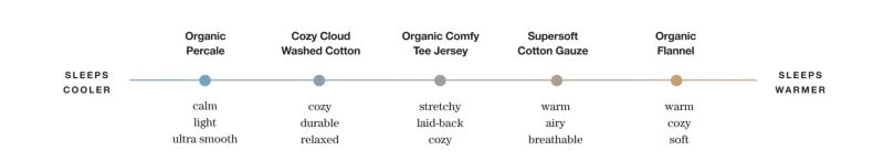 Cotton gauze bedding: A step below flannel in terms of warmth, our cotton gauze baby and kids' bedding is made of 100% organic cotton. Its super soft double-layer weaving creates pockets of air that ensure coziness while also providing breathability. What does this mean for your family? That cotton gauze bedding is the ideal choice for children who prefer being warmer when they sleep and once washed, the sheets become even fluffier.