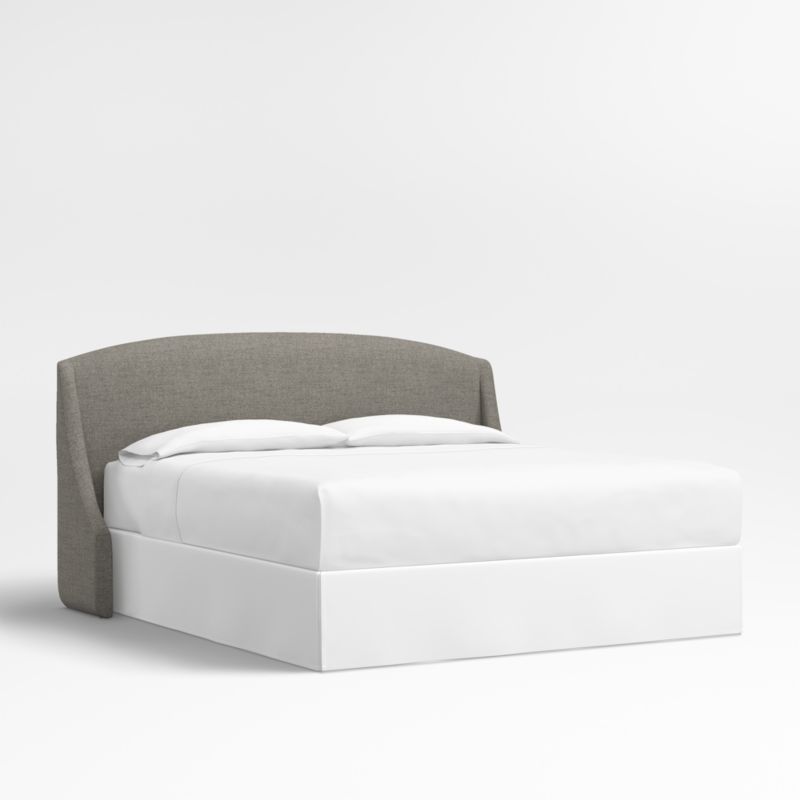 Our custom bed collection lets you mix and match our top-selling headboards and bases for a look that's truly yours. The Lafayette headboard gives your bed the sumptuous curves of a French-style chaise with a rounded top and sloped wings. Upholstered in a dark grey bouclé weave, the elegant headboard is designed to fit perfectly with any of our bed bases.