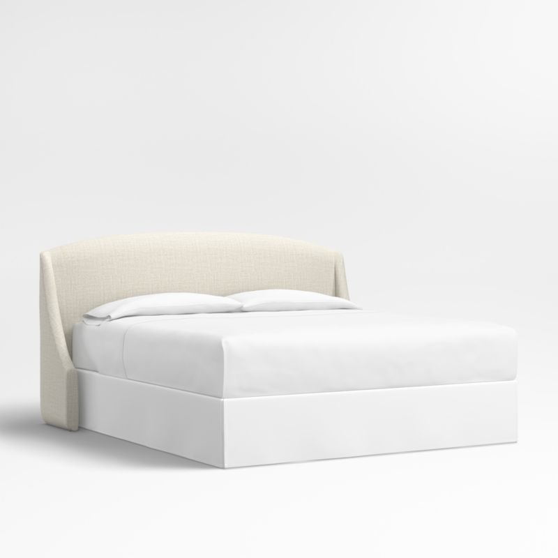 Our custom bed collection lets you mix and match our top-selling headboards and bases for a look that's truly yours. The Lafayette headboard gives your bed the sumptuous curves of a French-style chaise with a rounded top and sloped wings. Upholstered in a beige textured weave, the elegant headboard is designed to fit perfectly with any of our bed bases.