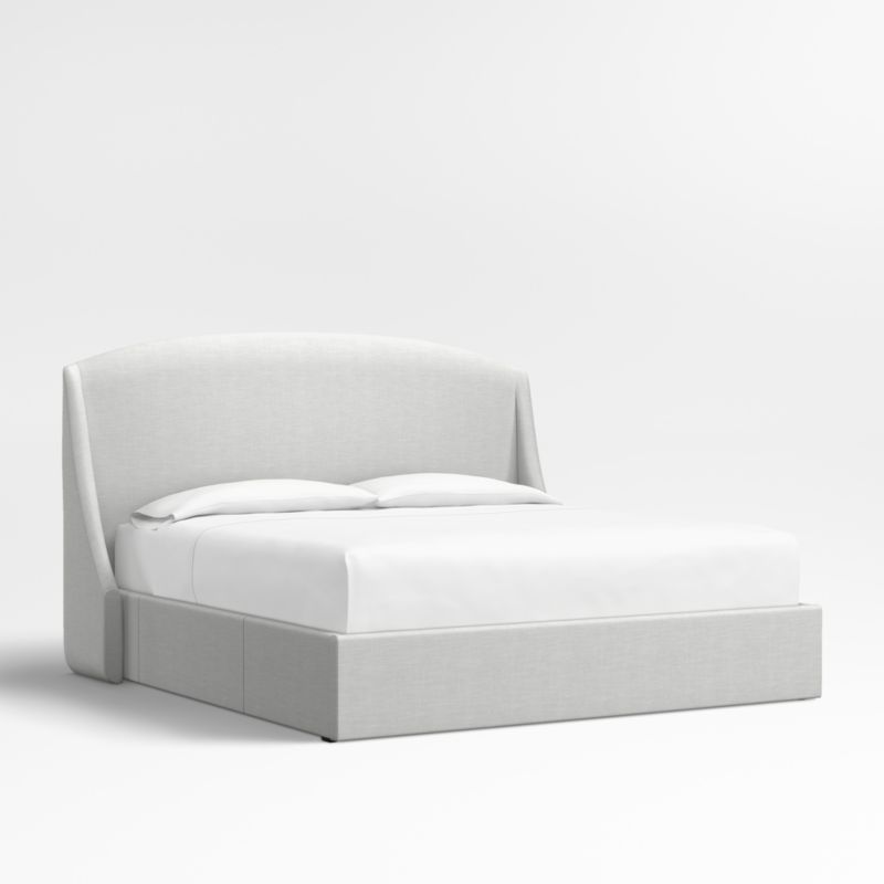 Our custom bed collection lets you mix and match our top-selling headboards and bases for a look that's truly yours. The Lafayette tall headboard gives your bed the sumptuous curves of a French-style chaise with a rounded top and sloped wings. The base integrates three roomy drawers—one on each side and one at the foot of the bed—for storing off-season clothes and extra blankets. As a plus, the side drawers open with just enough clearance to avoid hitting nightstands and other bedroom furniture. Both pieces are upholstered in a linen-blend fabric in cool grey.