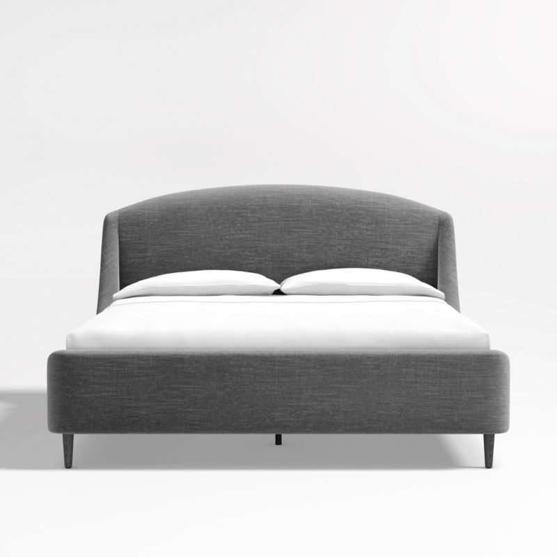 Lafayette streamlines the sumptuous curves of a French-style chaise into an upholstered bed for the modern bedroom. Fully upholstered in a charcoal linen-like fabric, the bed curves down from the gently rounded headboard to slim rails that gracefully climb to form the lower-profile footboard. Turned solid oak legs have a charcoal finish to complement the upholstery and keep the look fresh and modern.