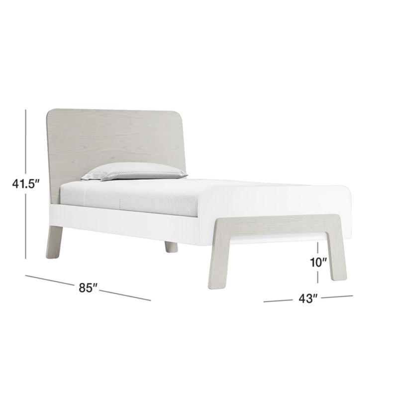 Versatile and neutral, our Lamont Twin Bed features a light grey wash stain that contrasts with the white finish for a modern two-tone look. The bed's high headboard is perfect for reading books before lights out. Plus, the hidden storage compartment behind the headboard provides a unique way to store their favorite bedtime stories, the toys they love and maybe even a secret treasure or two.
