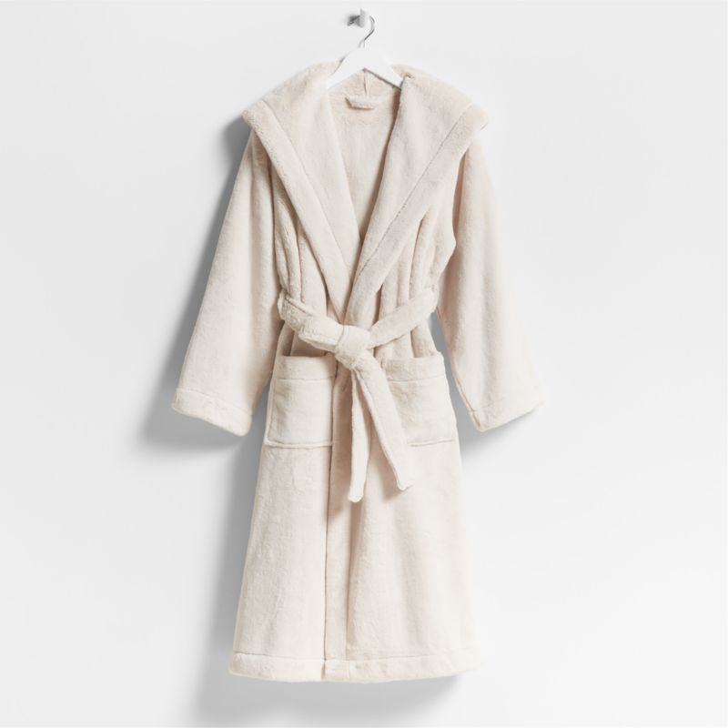 Wrap yourself in luxury. Our exclusive beige bathrobe nestles you in unbelievably plush and incredibly soft faux fur. Styled with a broad shawl collar, patch pockets and a tie waist belt, the robe pampers you with spa-like luxury. Pair with matching faux fur beige slippers for a truly indulgent experience. Also available in small/medium size.