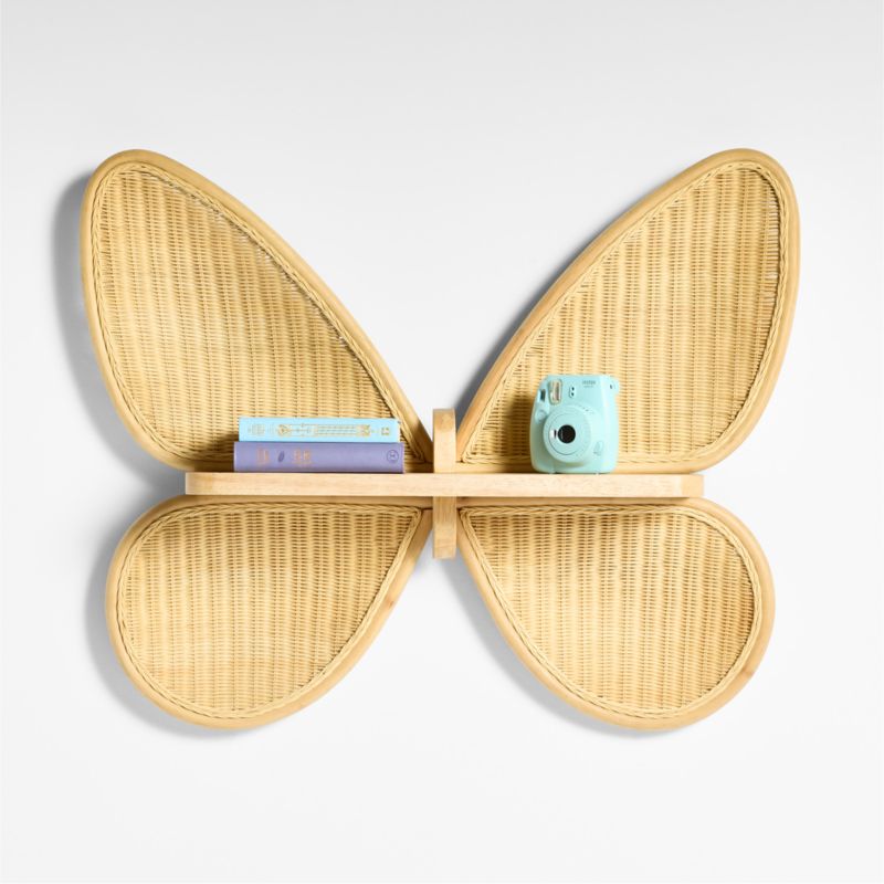 Let their imagination take flight with this butterfly-shaped shelf. Handwoven from natural wicker and nestled within a wood frame, it adds a whimsical, nature-inspired accent to kids' favorite spaces. The central shelf is just the right size for displaying small treasures, favorite toys or keepsakes.