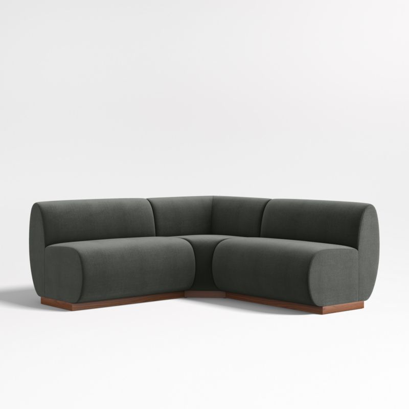 The best seat in the house. Leandro brings home the luxe feel of VIP fine dining with its soft faux-mohair upholstery. Waterfall curves give the L-shaped banquette's tight seat and back a graceful look, while oversized cushions dominate the design and anchor your dining room or kitchen with contemporary style. Supportive foam cushioning holds its shape for many dinner parties to come, wrapped in soft fiber for comfort. The three-piece banquette consists of two benches and a corner chair.