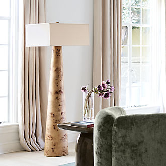 Even if you spend much of the time in your room asleep, bedroom lamps and light fixtures are integral to creating a comfortable oasis for rest. From getting ready in the morning to reading in bed, stylish and functional bedroom lighting fixtures give the room a warm, inviting glow. Looking for bedroom lighting ideas? First, think about the room's layout. Make use of the surface area on top of your dresser, bedside table or chest with bedroom lamps. While floor lamps cast a wide glow, bedroom table lamps offer more concentrated illumination—that's why they're a particularly smart small bedroom decorating idea. If you want a bedroom light with easy mobility, adjustable lamps for the bedroom are the way to go. When selecting ceiling lights and lamps for your home, also be sure to keep your room's color scheme and style in mind. Choosing a fixture in a complementary hue to the rest of the space gives it a cohesive feel, as does coordinating the aesthetics of your pieces. For a modern feel, consider bedroom light fixtures with exposed bulbs or brushed metal details. Or, take a more classic approach using bedside table lamps with drum shades and ceramic bases.