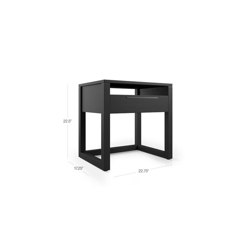 Linea's clean, linear styling puts the focus FSC ®-certified reclaimed teak. Tinted black, the nightstand is expertly constructed with traditional mortise-and-tenon joinery. Open framing gives each piece an airy, floating feel. Accented with a horizontal pull in sleek gunmetal, the one-drawer nightstand has an open shelf to stow nighttime essentials. The Linea Black Nightstand is a Crate and Barrel exclusive.