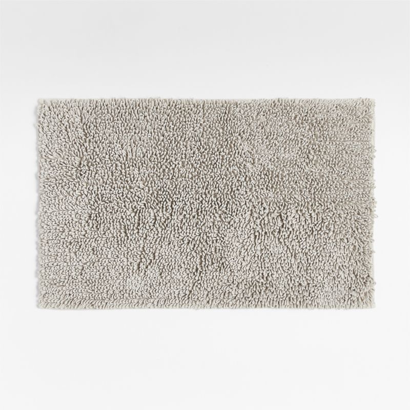 Covered in countless cozy loops, this bath rug in pale, silvery grey delights underfoot. Skilled artisans tuft the mat by hand, twisting soft organic cotton threads into a pleasing texture. The ultra-absorbent silver bath mat adds modern style to the bathroom and wicks away water as it warms the toes.