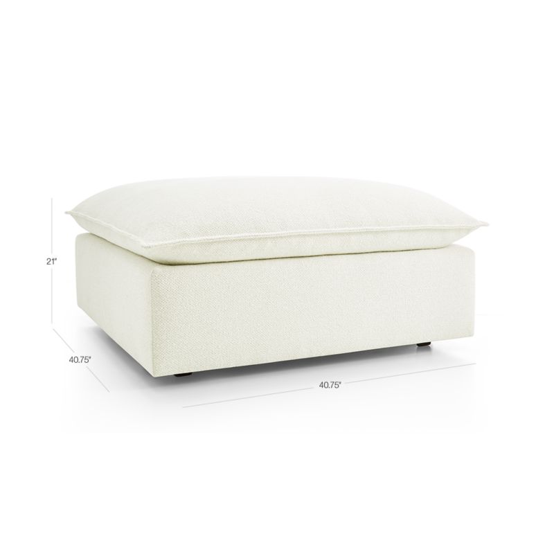 Our Lotus ottoman strikes the perfect balance between clean, modern style and cloud-like comfort. Nestled on a low shelter frame, a deeply plush pillow invites as a seat or footrest. Packed with a fluffy down blend and just the right amount of inner support to keep it looking crisp, the pillow just needs a quick fluff to keep looking company-ready. The Lotus Modular Low Ottoman is a Crate & Barrel exclusive.