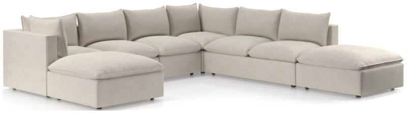 Scaled down to suit smaller-sized spaces, our popular Lotus sectional strikes the perfect balance between clean, modern style and cloud-like comfort. Nestled on a low shelter frames, deeply plush pillows are key to this large sectional's lounge-worthy luxury, packed with a fluffy down blend and just the right amount of inner support to keep it looking crisp. Just fluff and rotate to keep Lotus looking company-ready. The Lotus Petite 7-Piece Low Sectional is a Crate and Barrel exclusive.