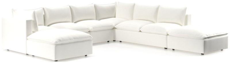 Scaled down to suit smaller-sized spaces, our popular Lotus sectional strikes the perfect balance between clean, modern style and cloud-like comfort. Nestled on a low shelter frames, deeply plush pillows are key to this large sectional's lounge-worthy luxury, packed with a fluffy down blend and just the right amount of inner support to keep it looking crisp. Just fluff and rotate to keep Lotus looking company-ready. The Lotus Petite 7-Piece Low Sectional is a Crate and Barrel exclusive.