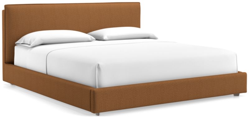 Modeled after our serene Lotus sofa, this bed finds the perfect balance of clean lines and soft simplicity for the modern bedroom. With upholstered rails, a pillow-cushioned headboard and flange tailoring, the queen-sized bed has a casual look that invites reading, reclining and, of course, sleeping. The Lotus Bed is a Crate and Barrel exclusive.
