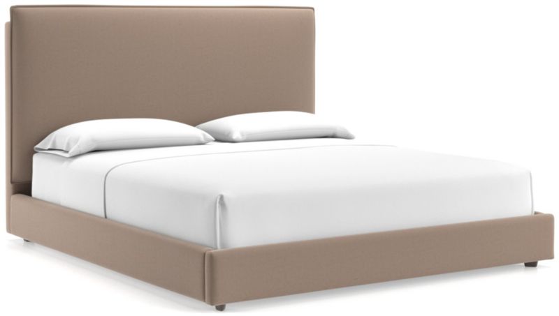 Modeled after our serene Lotus sofa, this bed finds the perfect balance of clean lines and soft simplicity for the modern bedroom. With upholstered rails, a pillow-cushioned headboard, and flange tailoring, the bed has a casual look that invites reading, reclining and, of course, sleeping. The Lotus Tall Bed is a Crate and Barrel exclusive.