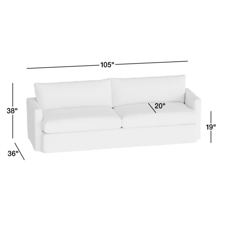 Our bestselling Lounge sofa marries modern style with built-to-last durability and the casual ease of slipcovers. Offering the ultimate in comfort, the sofa has a slightly more upright sit, with a few inches shaved off the depth to make sitting down and getting up a bit easier. But what you'll really notice are the same supersoft back cushions, room-defining proportions and slim track arms that maximize sitting space. We love the slipcovers in Ascend, a cotton-blend performance fabric with the breezy look and feel of linen.