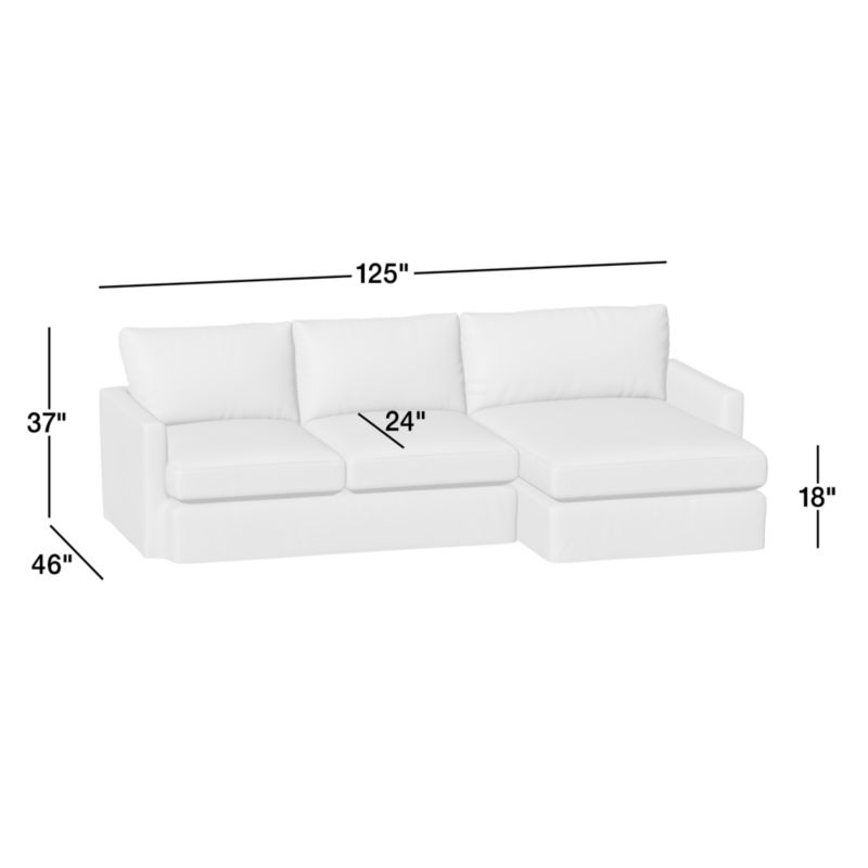 Lounge Deep 2-Piece Slipcovered Sectional Sofa with Chaise Lounge25"Hheight125"Wwidth64"DdepthMeasurements are in inches.63.5Hheight317.5Wwidth162.56DdepthcmMeasurements are in centimeters.