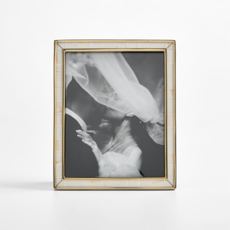 Inspired by vintage cinema and '70s glam decor, our Love Story frame is opulent yet intimate. Gleaming brass-finished trim frames resin tiles that emulate the organic warmth of ivory or marble. Hand-finished by artisans, the picture frame presents beloved images in a timeless style that balances elegance and surprise.
