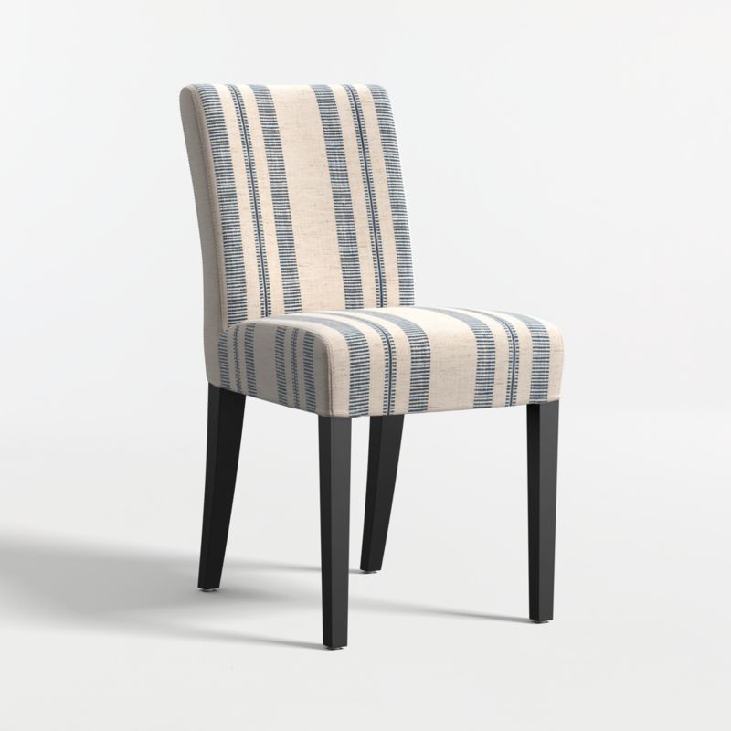 Lowe Indigo Stripe Upholstered Dining Chair with Ebony Wood Legs