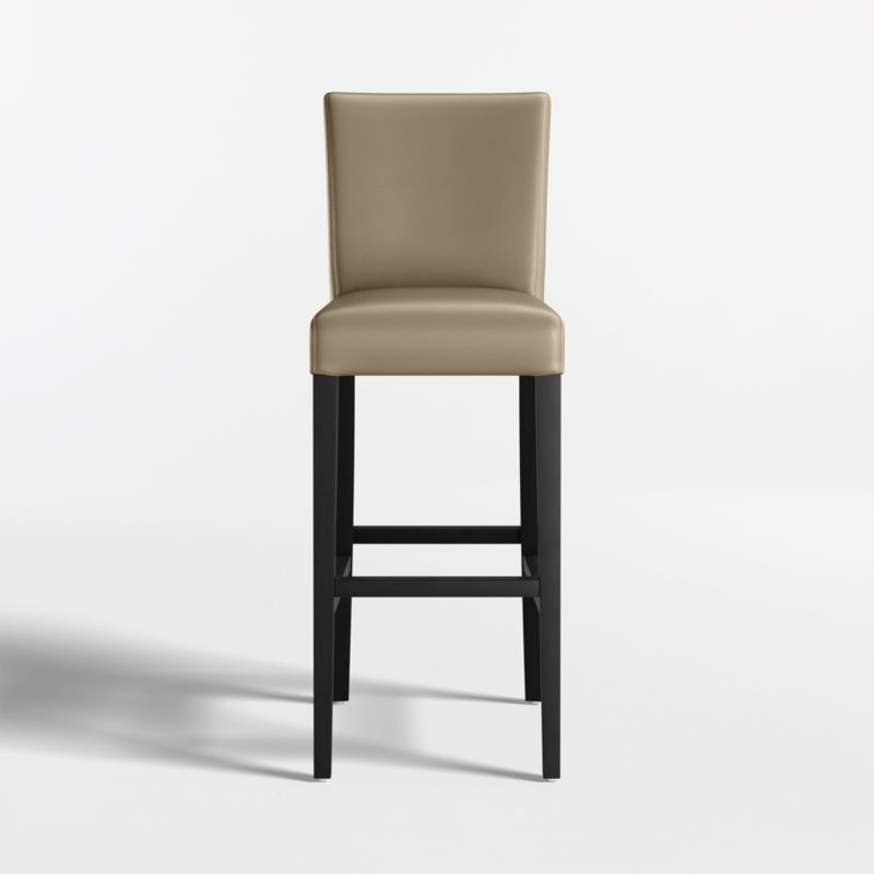 With a roomy cushioned seat and back, our Lowe bar stool is designed for lingering at a bar or high dining table. Sleek leather tailors the cushioned, tight seat in sophistication, pairing perfectly with slim hardwood legs. Our Lowe collection's many seating options in an array of coordinating leathers and fabrics mix and match for the perfect look.